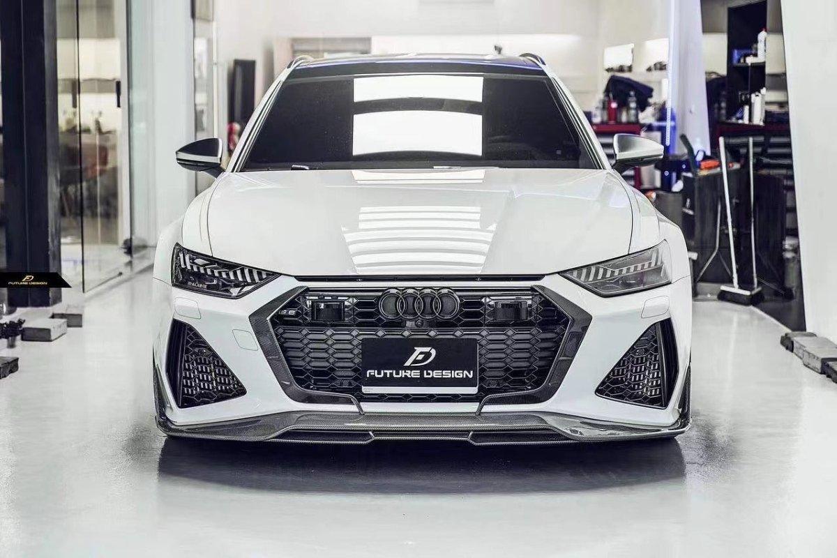 AUDI HAD CREATED A MEAN MACHINE WITH THE RS6 & RS7 . FOR THOSE WHO ARE LOOKING TO ONE UP THEIR GAME ON THE C8 , FUTURE DESIGN OFFERS AN AGGRESSIVE AND FUNCTIONAL AERO PACKAGE. LIGHT WEIGHT CARBON FIBER COMPOSITE IS THE IDEA MATERIAL FOR THIS APPLICATION.