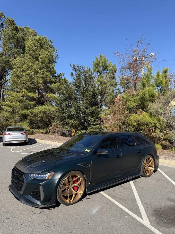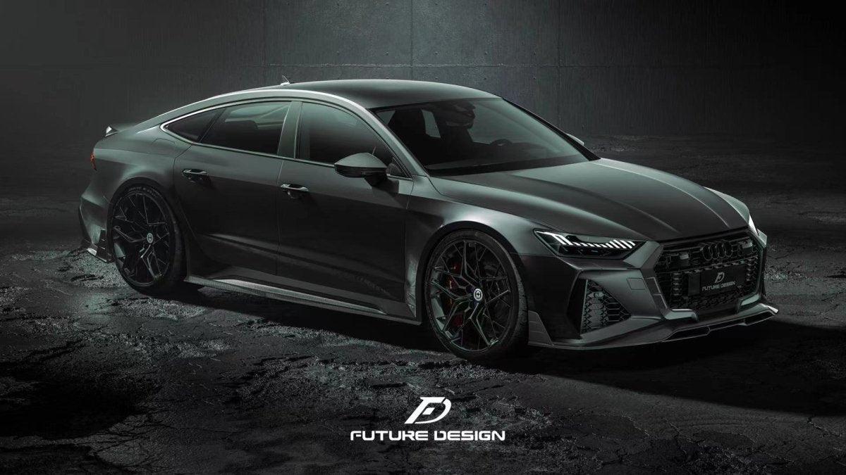 AUDI HAD CREATED A MEAN MACHINE WITH THE RS6 & RS7 . FOR THOSE WHO ARE LOOKING TO ONE UP THEIR GAME ON THE C8 , FUTURE DESIGN OFFERS AN AGGRESSIVE AND FUNCTIONAL AERO PACKAGE. LIGHT WEIGHT CARBON FIBER COMPOSITE IS THE IDEA MATERIAL FOR THIS APPLICATION.