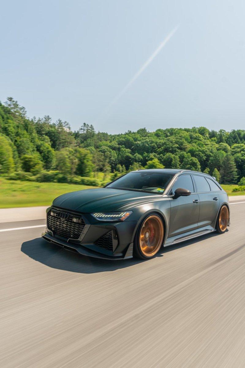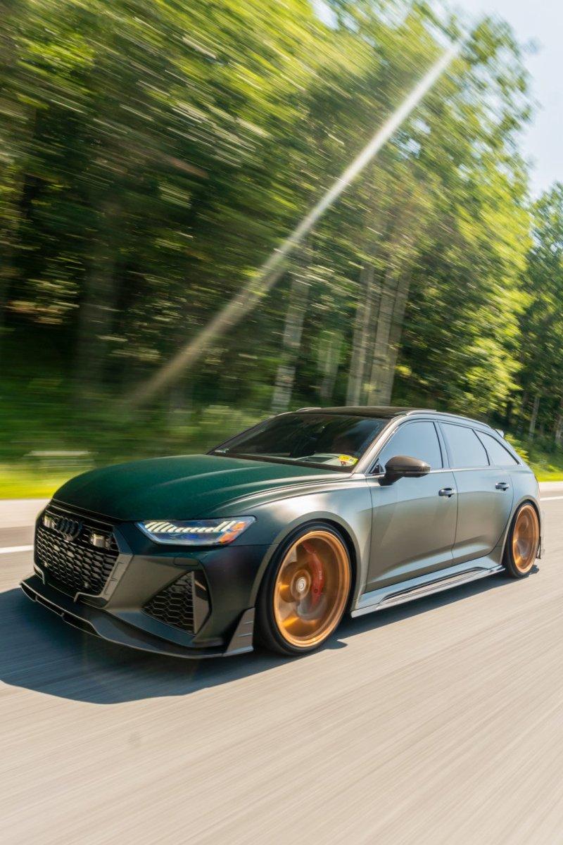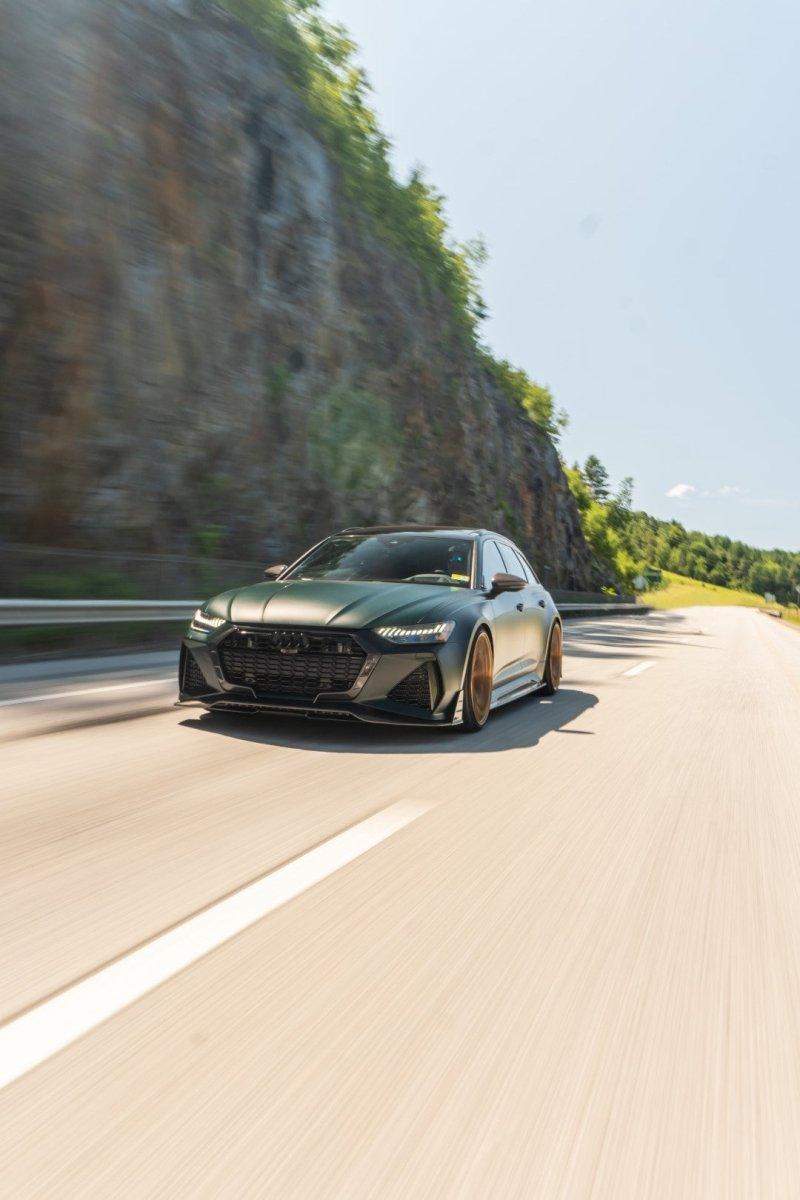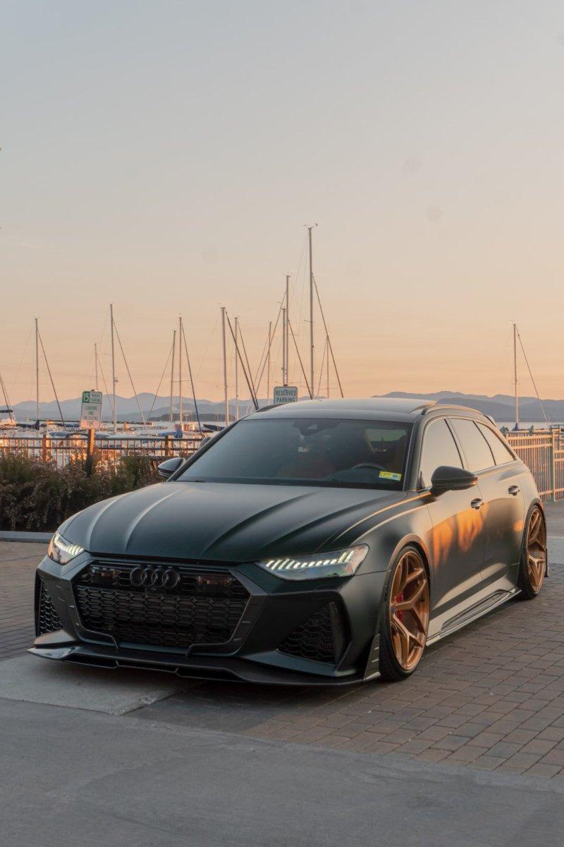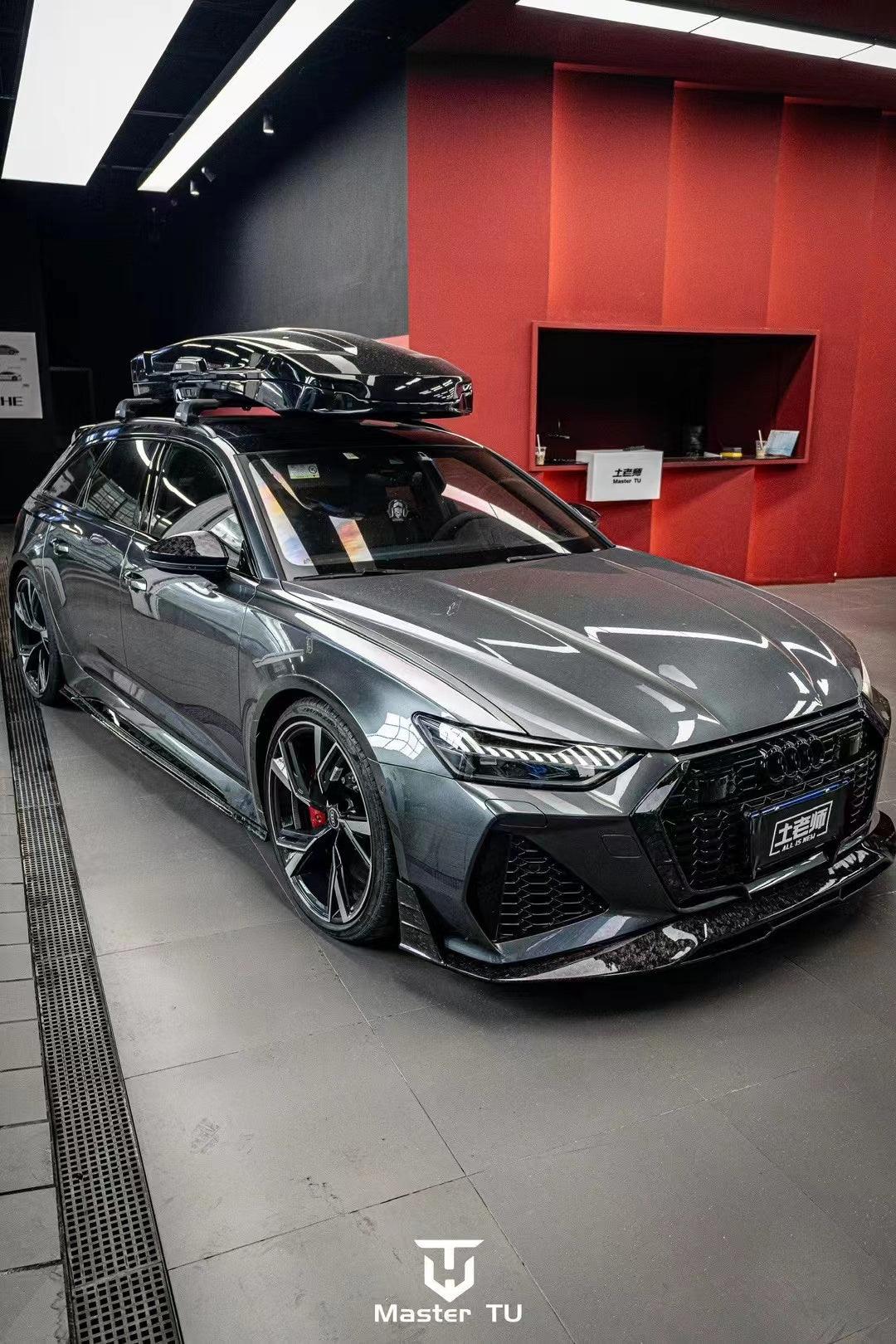 AUDI HAD CREATED A MEAN MACHINE WITH THE RS6 . FOR THOSE WHO ARE LOOKING TO ONE UP THEIR GAME ON THE C8 RS6, FUTURE DESIGN OFFERS AN AGGRESSIVE AND FUNCTIONAL AERO PACKAGE. LIGHT WEIGHT CARBON FIBER COMPOSITE IS THE IDEA MATERIAL FOR THIS APPLICATION.