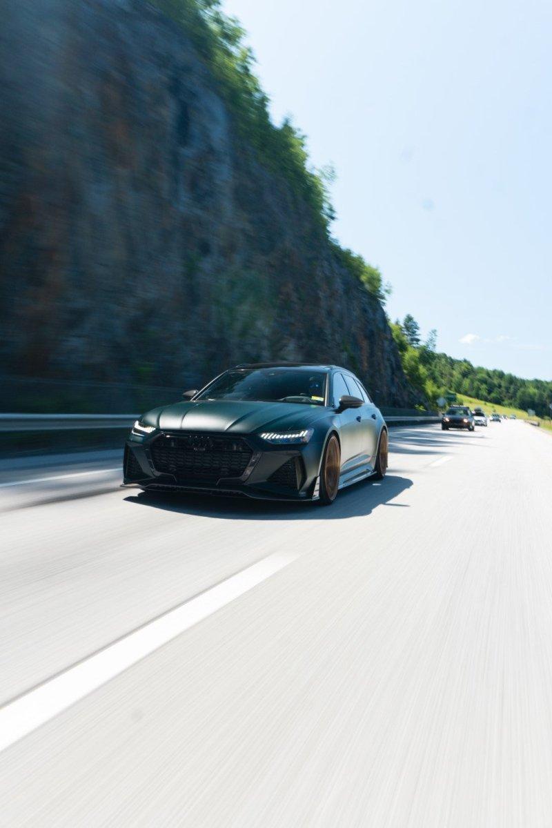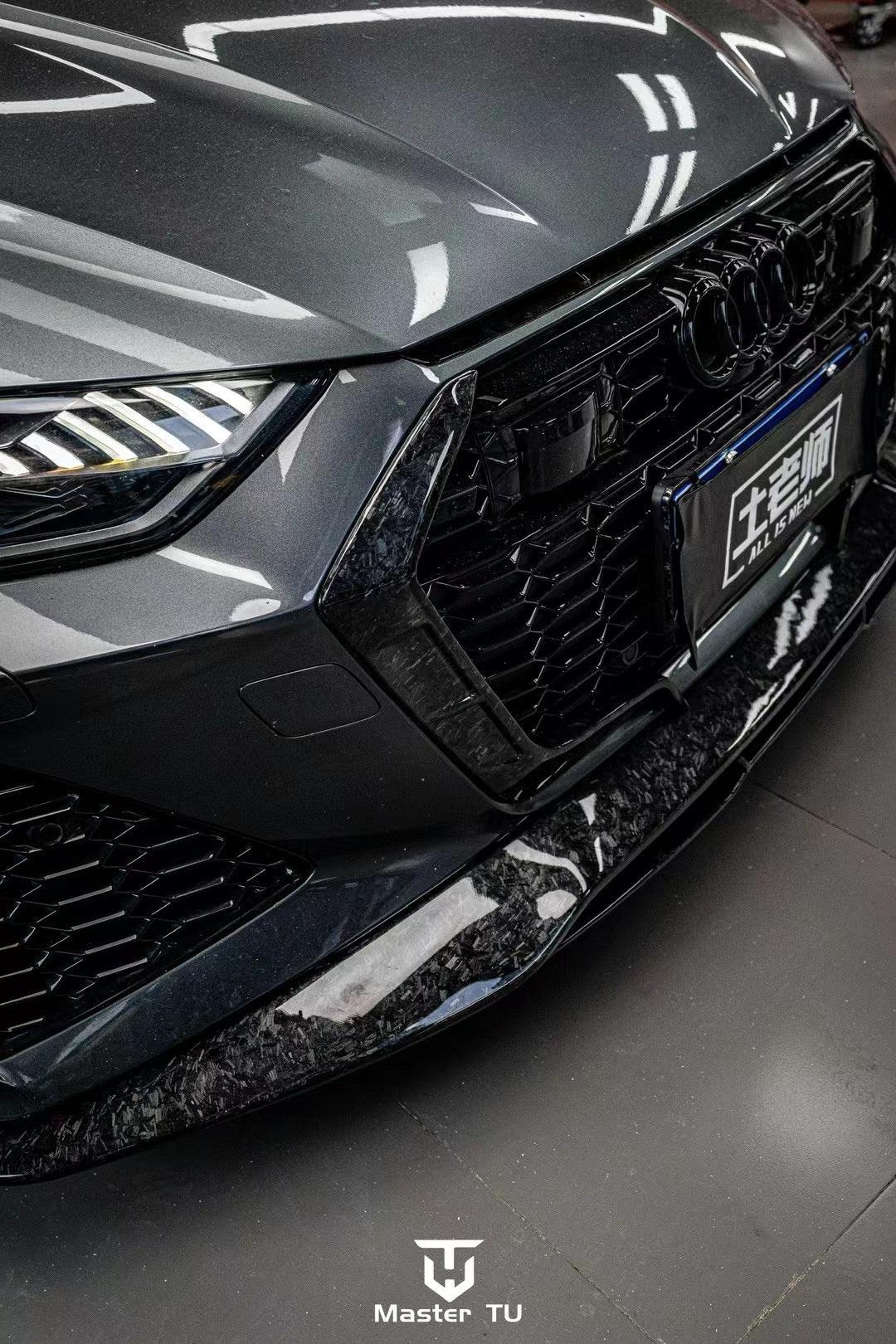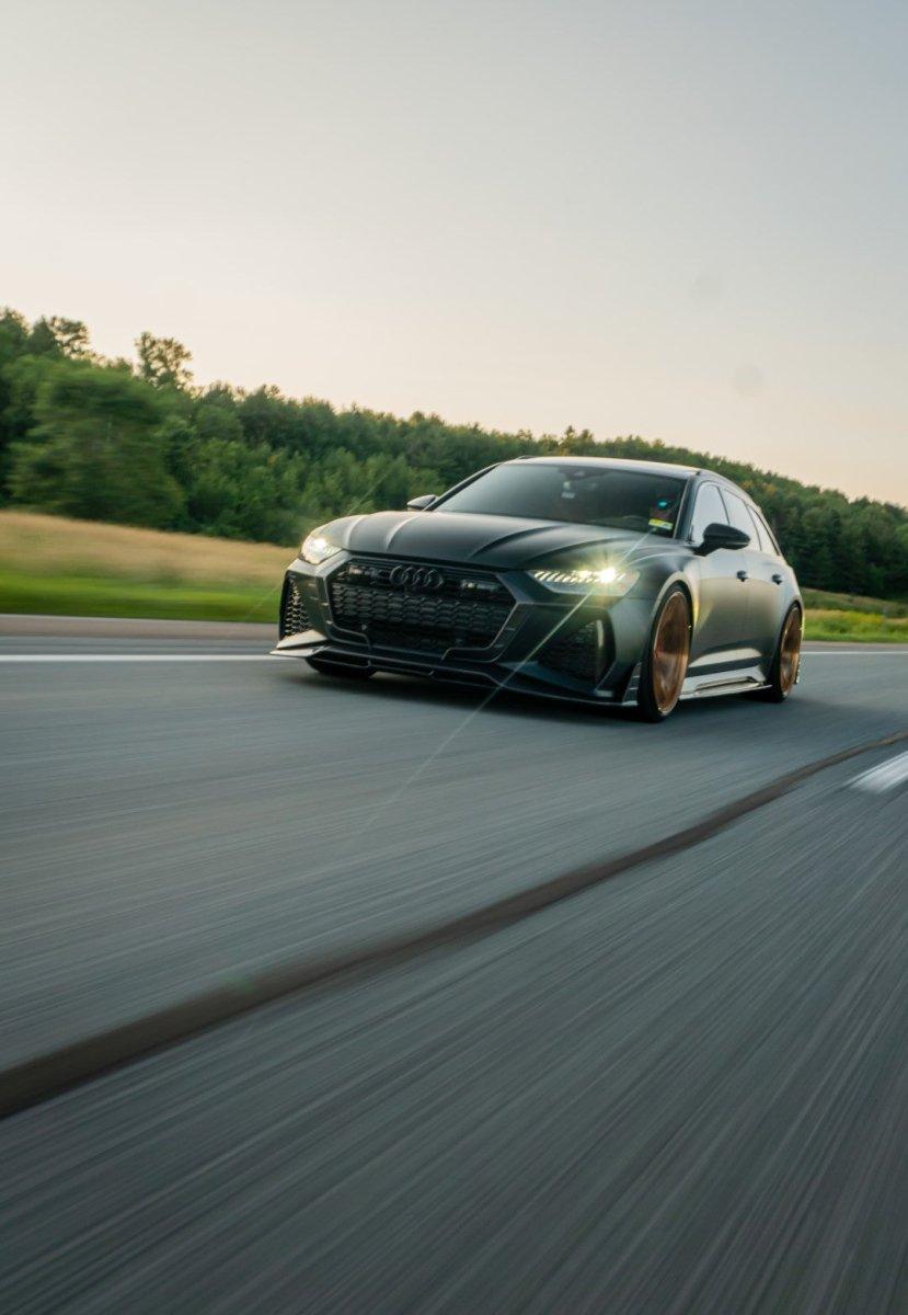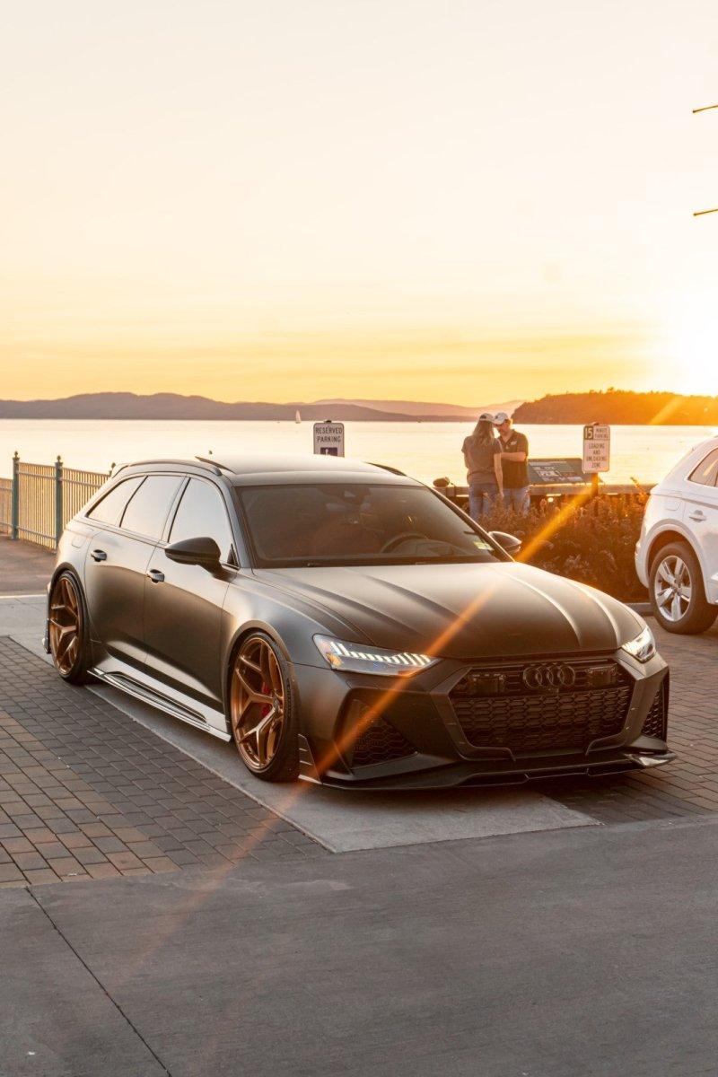 AUDI HAD CREATED A MEAN MACHINE WITH THE RS6 . FOR THOSE WHO ARE LOOKING TO ONE UP THEIR GAME ON THE C8 RS6, FUTURE DESIGN OFFERS AN AGGRESSIVE AND FUNCTIONAL AERO PACKAGE. LIGHT WEIGHT CARBON FIBER COMPOSITE IS THE IDEA MATERIAL FOR THIS APPLICATION.